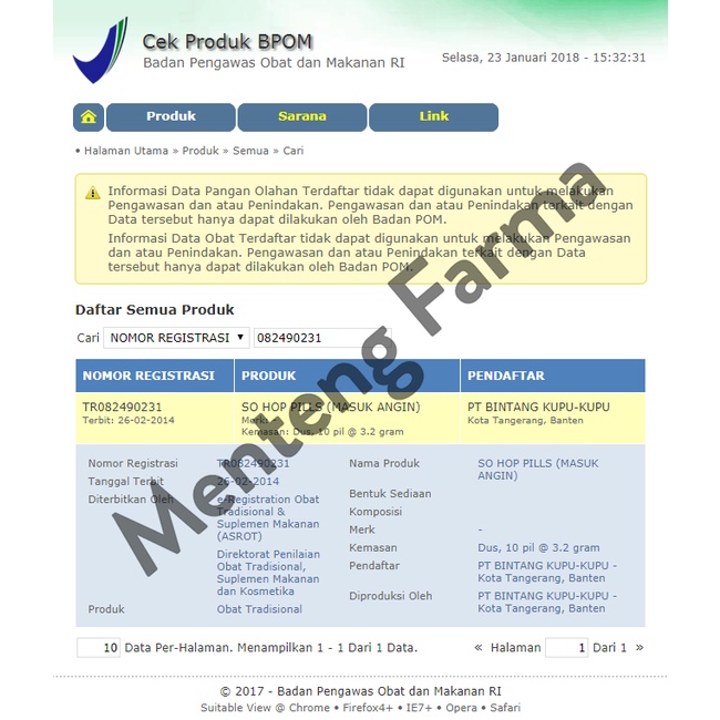 Perhatian : Tidak boleh diminum selama masa kehamilan