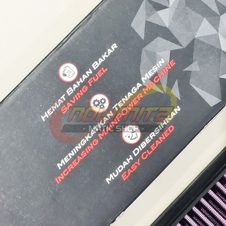 Sementara jika suplai udara masuk lebih banyak, otomatis debu juga ikut masuk dong ke ruang mesin? Eits, tidak perlu khawatir, sebab filter Proper racing line telah dilapisi semacam jaring kawat yang menjepit filter kainnya Dengan menggunakan filter proper racing line yang mampu menyaring debu hingga 30 micron. Maka udara yang awal nya buruk untuk mesin motor, setelah melalui penyaringan yang efektif maka udara yang di hasilkan akan ideal. Hasilnya pembakaran akan lebih besar. Ujungnya power naik. Kalau diukur lewat dyno test, naik sekitar 1.5 dk,”