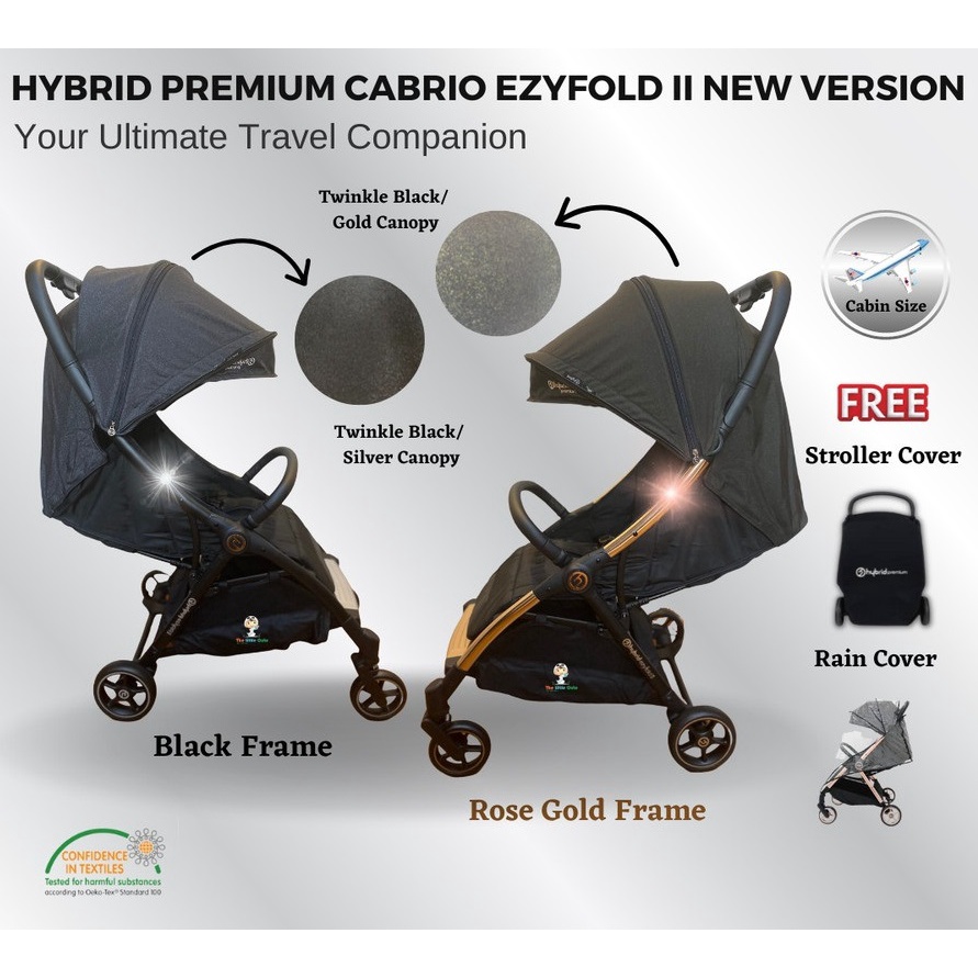Hybrid Cabrio Ezyfold Autofold Rose Gold Stroller Cabin Size