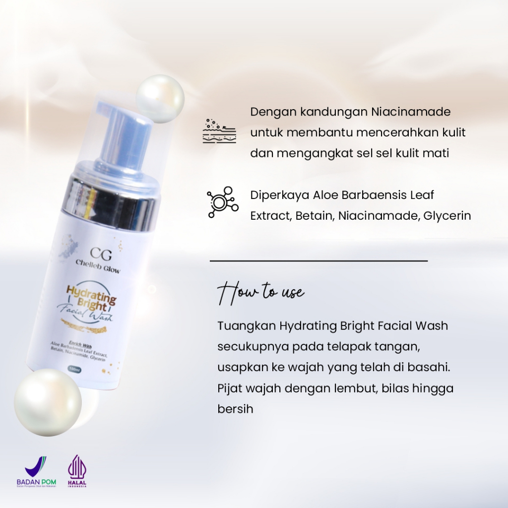 Cara Pakai : Tuangkan Hydrating Bright Facial Wash secukupnya pada telapak tangan, usapkan ke wajah yang telah di basahi. Pijat wajah dengan lembut, bilas hingga bersih