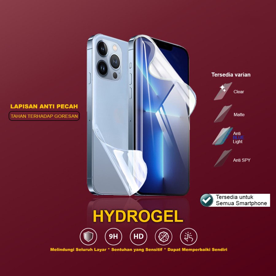 Handphone & Aksesoris > Casing & Skin > Pelindung Layar Handphone > Hydrogel Antigores All Type HP SAMASUNG XIAOMI OPPO VIVO RALME ASUS INFINIX IPHOEN GOOGLE PIXEL