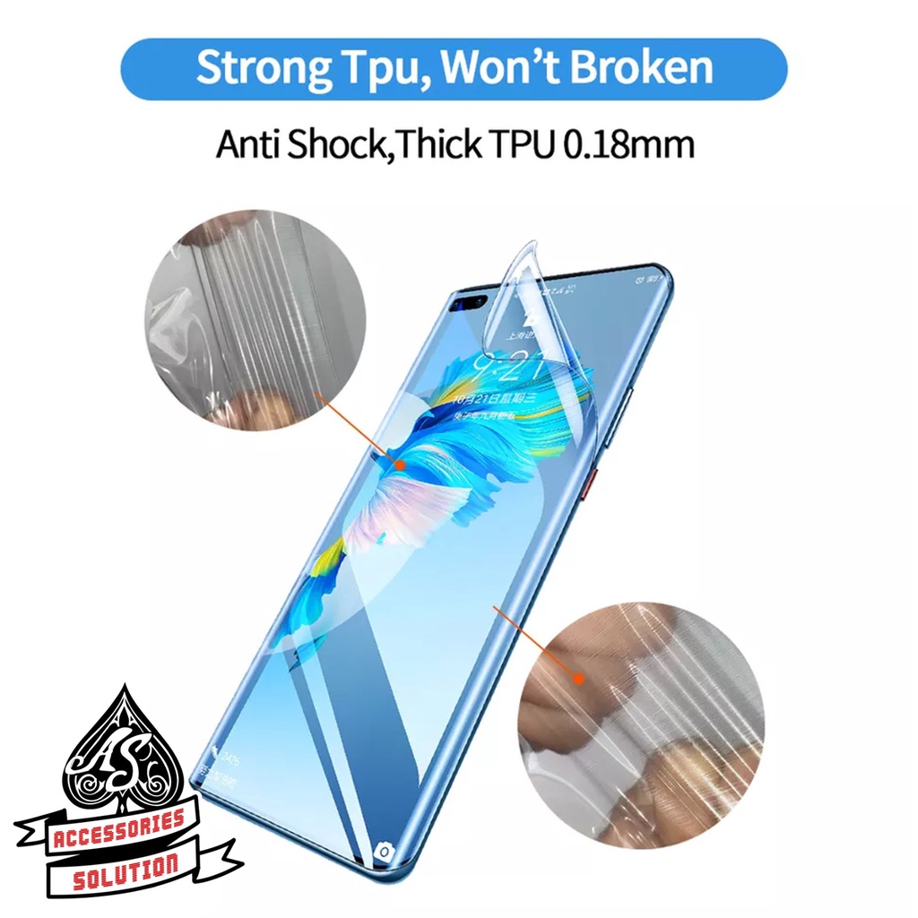 Keunggulan: 1. Bukan Tempered Glass (keras) melainkan Hydrogel berbahan lentur dan sangat Flexible serta tidak cepat retak seperti tempered glass. 2. Pemasangannya mudah dan presisi 3.Sifatnya seperti jelly bisa menahan benturan saat handphone terjatuh 4. Jika terjadi gores halus, akan hilang dengan sendirinya dalam Hitungan Jam 5. Anti Fingerprint, Anti Debu 6. Pemasangan sangat mudah & presisi serta tidak ada Gelembung2 / bagian yang tidak menempel. 7. Layar anda tetap sensitif, bahkan layar dengan sensor finger print. 8. Full Cover hingga kepinggir layar 9. Layar tetap jernih, tidak mengurangi kecerahan.