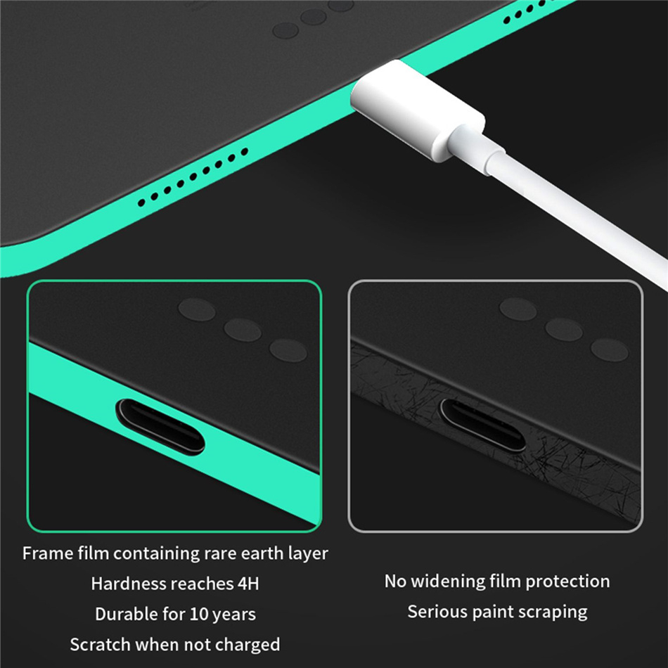 1. High quality PVC material: different from other inferior PET materials, this product uses high quality PVC, more durable, no fading 2. Protective Film, easy to paste, easy to operate, compatible with phone case after sticking this sticker 3. Exquisite design, beautiful, real machine cutout, accurate hole 4. Comfortable, anti-slip, anti-fingerprint 5. Excellent protection against scratches or dust in normal daily use 6. 3M glue,no residue after remove 7. Frame skin only, not include back film 8. Continuous luminescence 9. Plating processing, anti-fingerprint 10. Precise cutout How to use? 1. Remove the corresponding part from the sticker and fit it to the side of the phone 2. After the sticker is finished, blow the it with an air blower, heat it and stick it tight Package Includes: Side Skin*1 Cleaning Tool*1 note: This is a frame film, not a case. Due to the problems of lighting effects and shooting angles. there will be certain tolerances in the product, please understand. Please allow 0-1cm error due to the manual measurment,
