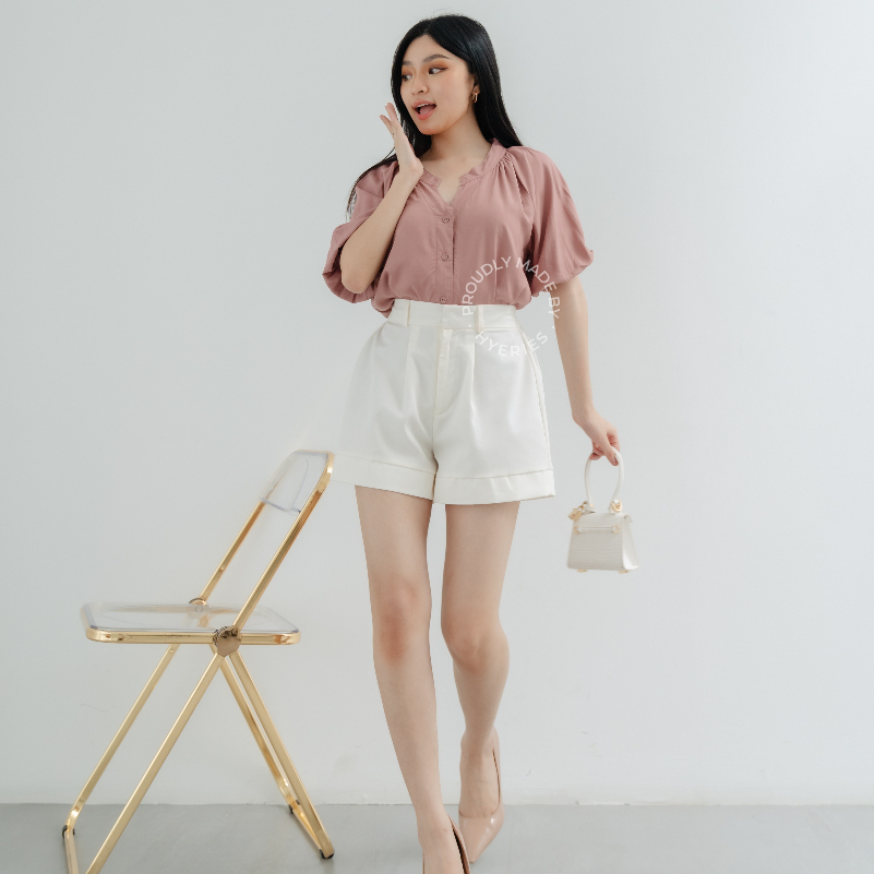Detail [HYERIES] Chaewon Top / Atasan casual wanita korea / puffy sleeve top / atasan lengan balon / blouse wanita / puff sleeves top oneck / korean top / blouse kerja / atasan kantor / pakaian kasual wanita / korea blouse / oversized shirt / baju jumbo big size
