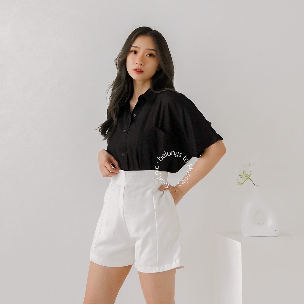 Detail HYERIES Soomin Shirt / Kemeja Casual Wanita / Kemeja Polos Lengan Pendek / Basic Shirt / Collar short sleeves shirt / Atasan casual wanita / Kemeja kantor / Kemeja oversize / Kemeja jumbo / Kemeja kerja / Atasan korea / Kemeja Korea / Kemeja hitam