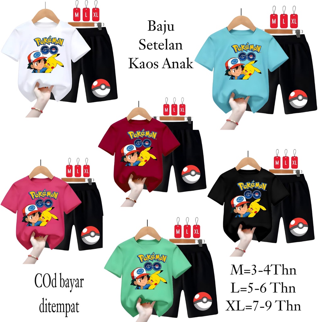 Detail Hzl_outfit Setelan Kaos Anak Laki Dan Perempuan Poke Go M,L,XL