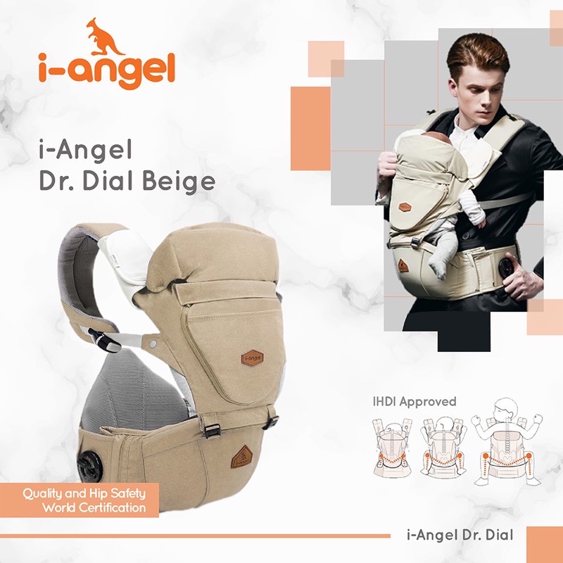 Keunggulan i-Angel Dr. Dial: 1. CUSTOM BACK SUPPORT : berfungsi utk membuat postur tubuh yg menggendong TEGAK, LURUS & sangat Baik utk Tulang Belakang 2. DIAL SYSTEM : Salah satu fitur yg hanya dimiliki i-Angel Dr. Dial, memudahkan dalam mengatur Belt, menyesuaikan ukuran Belt agar PAS & sesuai keinginan dan custom pada tubuh tanpa perlu melepas velcro 3. Dengan beban pun akan terlihat hipseat tetap lurus & tegak. Artinya support sangat baik untuk yg menggendong. Posisi badan anak serta pinggul tidak “terjatuh” 4. Belt mempunyai Zipper yg dapat diadjust dalam ukuran S – XL = 25 - 43inch (63 – 110cm) 5. Buckle belakang inovatif dilengkapi dgn Magnet. Hanya One Touch and Done 6. Untuk mengatur tinggi & rendah pengunci punggung cukup digeser-geser pada rel di tulang shoulder pads 7. Dari segi keamanan sudah terbukti dgn sertifikasi dari IHDI - Asosiasi Dokter Anak & Dokter Tulang di Amerika. Sangat mendukung M Shape pada posisi anak digendong 8. Fitur unggulan lain : Head Support, Sleeping Hood, Ventilation, Double Safety, 3D system air mash yg lebih luas, Shoulder Pad yg terbuat dari Organic Cotton & bantalan Anti Slip pada Hipseat