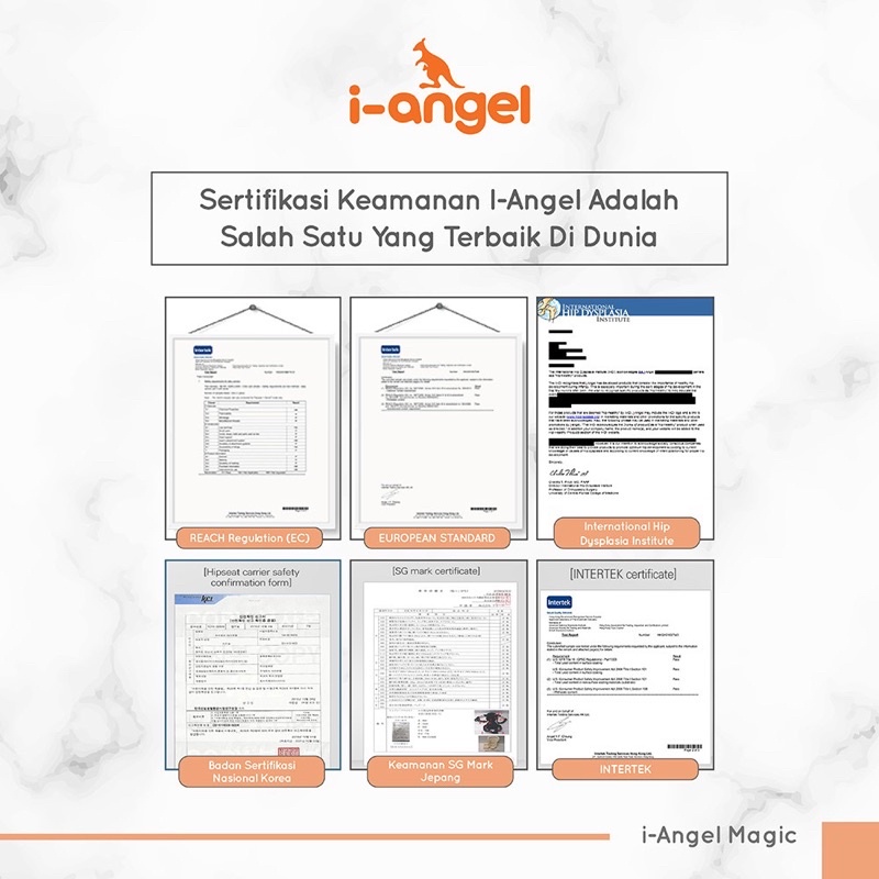 i-Angel adalah satu-satunya Hip-Seat Baby Carrier yang disertifikasi oleh International Hip Joint Association.