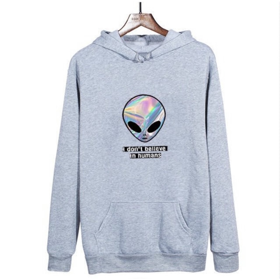 Pakaian Pria > Hoodie & Sweatshirt > Hoodie > I Don't Beleave in Humans Alien Sweater Hoodie Trendy II I Don't Beleave in Humans Alien Jumper Hoodie II Sweter Oblong Topi Sz M - XL Anak & Dewasa ( Pria & Wanita )