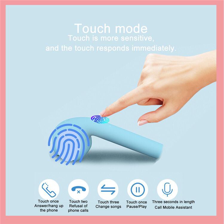 Deskripsi produk: -Desain earbud sentuh, multifungsi untuk mengontrol on/off, jawab/tutup telepon, play/pause musik. -Kualitas suara yang baik dan jernih -Desain tanpa kabel, body kecil, dan portable nyaman digunakan kebutuhan sehari-hari -Hadir dengan charging box, bisa digunakan untuk mengisi daya dimanapun dan kapanpun. -Penggunaan koneksi Bluetooth 5.0 dengan signal yang stabil dan kuat sehingga tidak mudah terputus -Dilengkapi microphone di kedua sisi, dapat menjawab panggilan dengan mudah -Tampilan luar yang stylish dan trendy -Pas di telinga dan nyaman dipakai