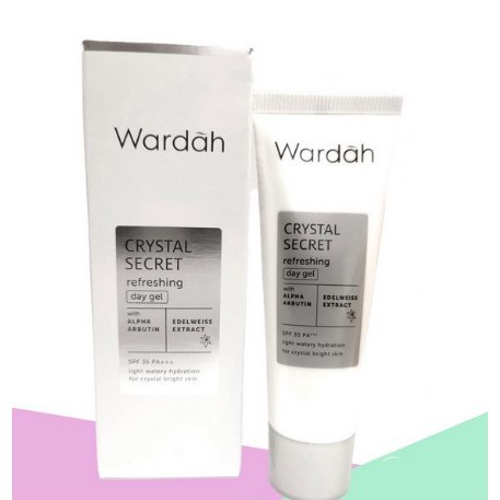WARDAH CRYSTAL SECRET Refeshing Day Gel Kulit yang tidak terjaga kelembapannya dan tidak terlindungi dari sinar matahari akan menjadi kusam dan belang. Wardah Crystal Secret Refreshing Day Gel, pelembap dengan tekstur gel yang ringan seperti air, berikan efek segar dan terhidrasi seketika. Mengandung Edelweiss Extract, formulanya bantu menjaga skin barrier dari faktor penyebab kulit kusam. Dilengkapi SPF 35 PA+++ untuk melindu i kulit dari paparan sinar UVA/UVB serta kombinasi Alpha Arbutin dan Niacinamide yang mencerahkan dan meratakan warna kulit wajah, untuk pancaran kulit cerah sebening kristal.
