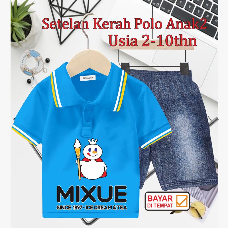 Detail ((IB))SETELAN ANAK KERAH POLO SEMI JEANS/MIXUE DIGITAL SABLON