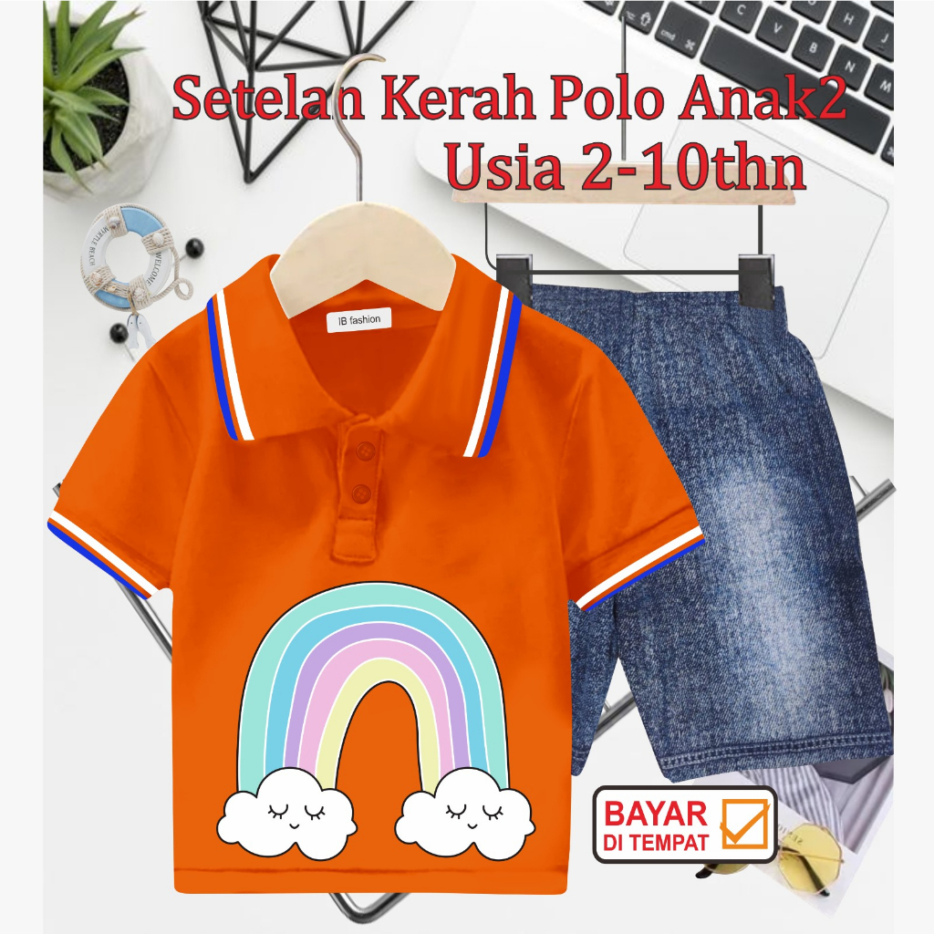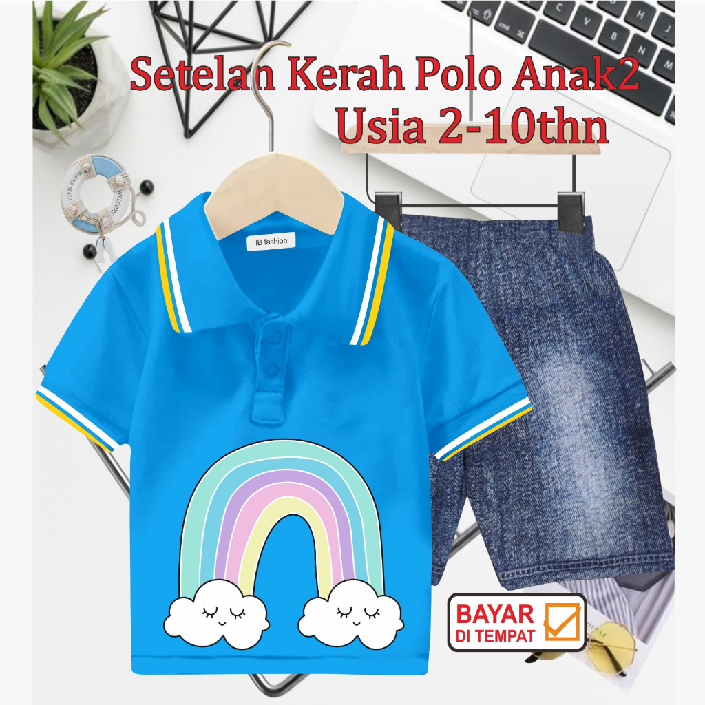 Detail ((IB))SETELAN ANAK2 KERAH POLO SEMI JEANS/RAINBOW DIGITAL SABLON
