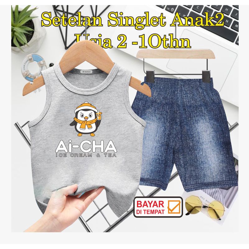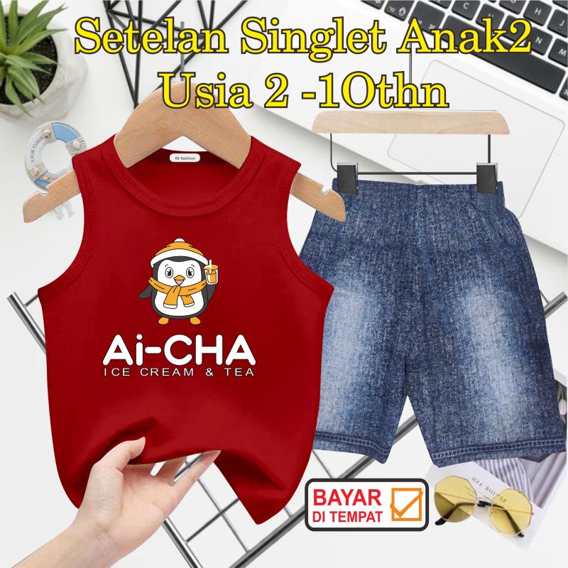 Detail ((IB))SETELAN ANAK2 SINGLET SEMI JEANS/AI-CHA DIGITAL SABLON