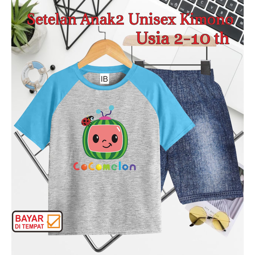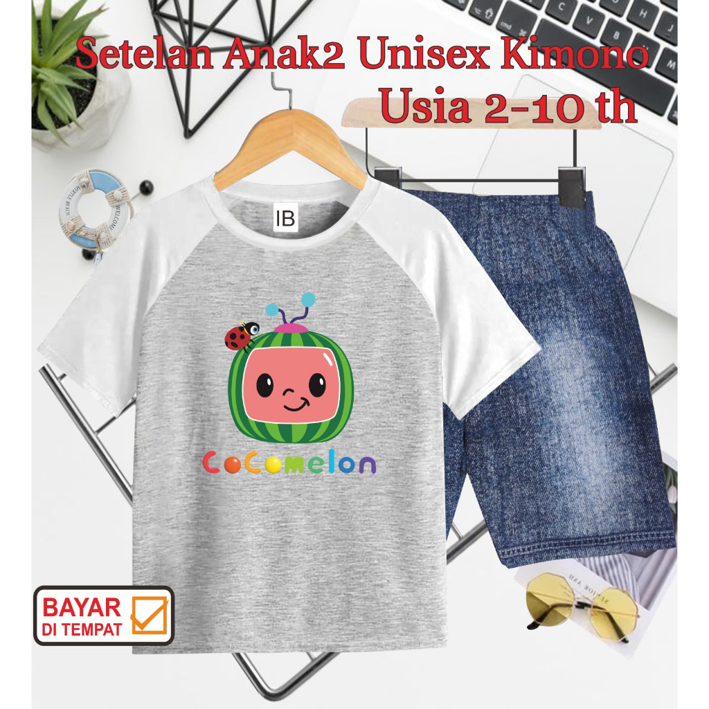 Detail ((IB))SETELAN ANAK2 UNISEX KIMONO SEMI JEANS/COCO MELON DIGITAL SABLON