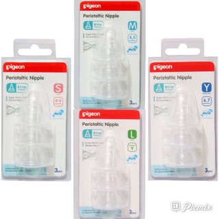 PIGEON Peristaltic Slim Neck Nipple Dot Teat Standar Standard Size Ukuran S M L Y Peristaltik Soft isi 3 pcs Ulir Slimneck 3pcs