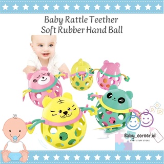 Baby Rattle Teether Soft Rubber Hand Ball / Mainan Gigitan dan Kerincingan Bayi