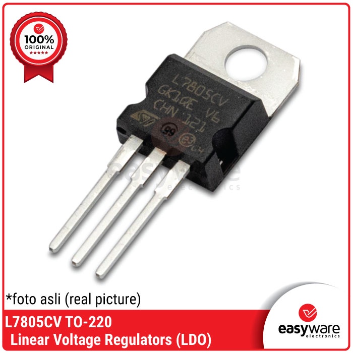 Detail IC REGULATOR L7805CV 7805 TO-220 ORIGINAL ST CHN