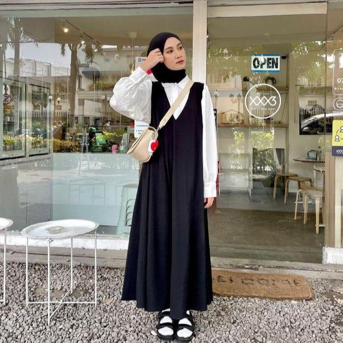 Detail ICH - Set Dress Ilona Jumbo Crinkle Airflow Overall Wanita Big Size