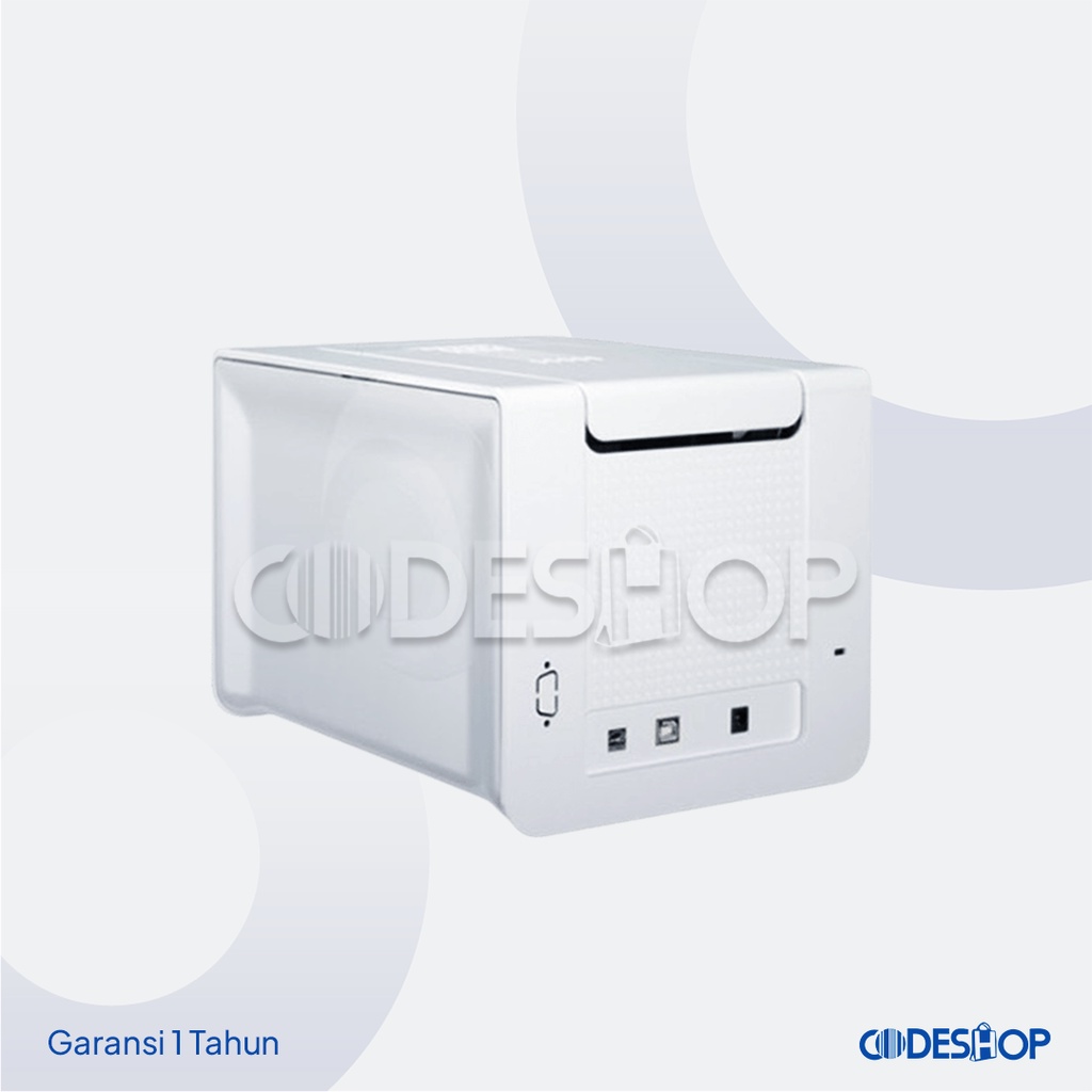 Spesifikasi: - Metode print : Dye Sublimation dan Monochrome - Resolusi : 300 dpi (11,8 dots/mm) - Ukuran kartu : CR-80 (53.9885.6mm) - Ketebalan kartu : 0.25 - 1.25 mm (10-40mil) - Jenis kartu : All PVC, Composite PVC cards, PET, ABS - Memory : 16 MB - Driver Compatible OS : WinXP, Vista, Win7 (32/64bit), Win8 (32/64bit), Win10 ,Mac OS X 10.6 or above - Interface : USB 2.0