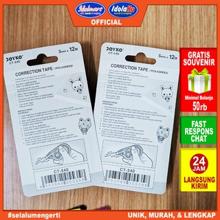 Murah dan kualitas bagus Correction Tape CT-540 adalah sebuah alat yang digunakan untuk menghapus tulisan di atas kertas yang ditulis dengan pulpen ataupun hasil print-out yang berfungsi sebagai landasan untuk menghapus. Spesifikasi: - Cepat dan bersih - Tidak perlu menunggu lama - Dapat diisi ulang - Ramah lingkungan - Panjang pita 12 m - Lebar pita 5 mm - Ukuran produk: 9,5x5x1,5cm - Ukuran kemasan: 14x8x1,5cm