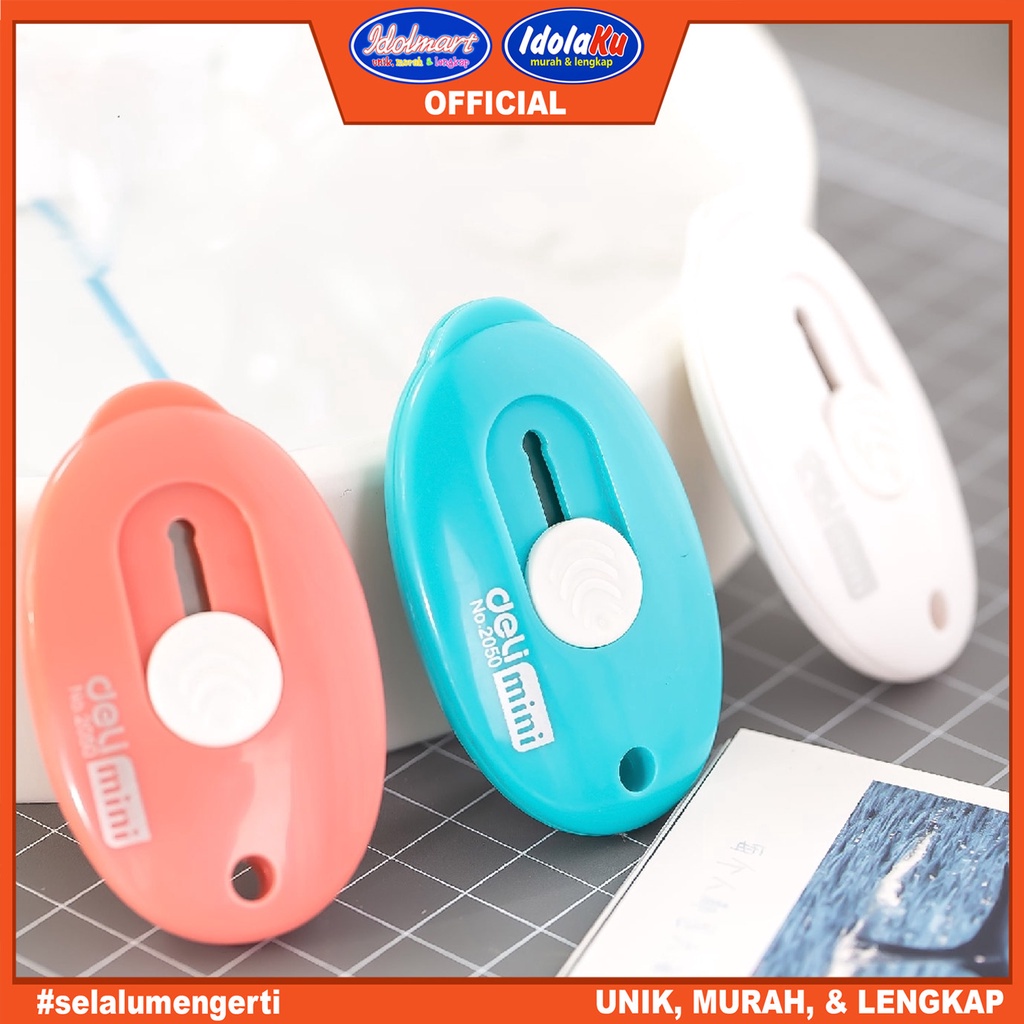 Buku & Alat Tulis > Alat Tulis > Alat Tulis Lainnya > IDOLMART Deli Mini Cutter Portabel 3 Warna Desain Simple, Pisau Tajam, Untuk Membuka Paket E2050 Deli Surabaya