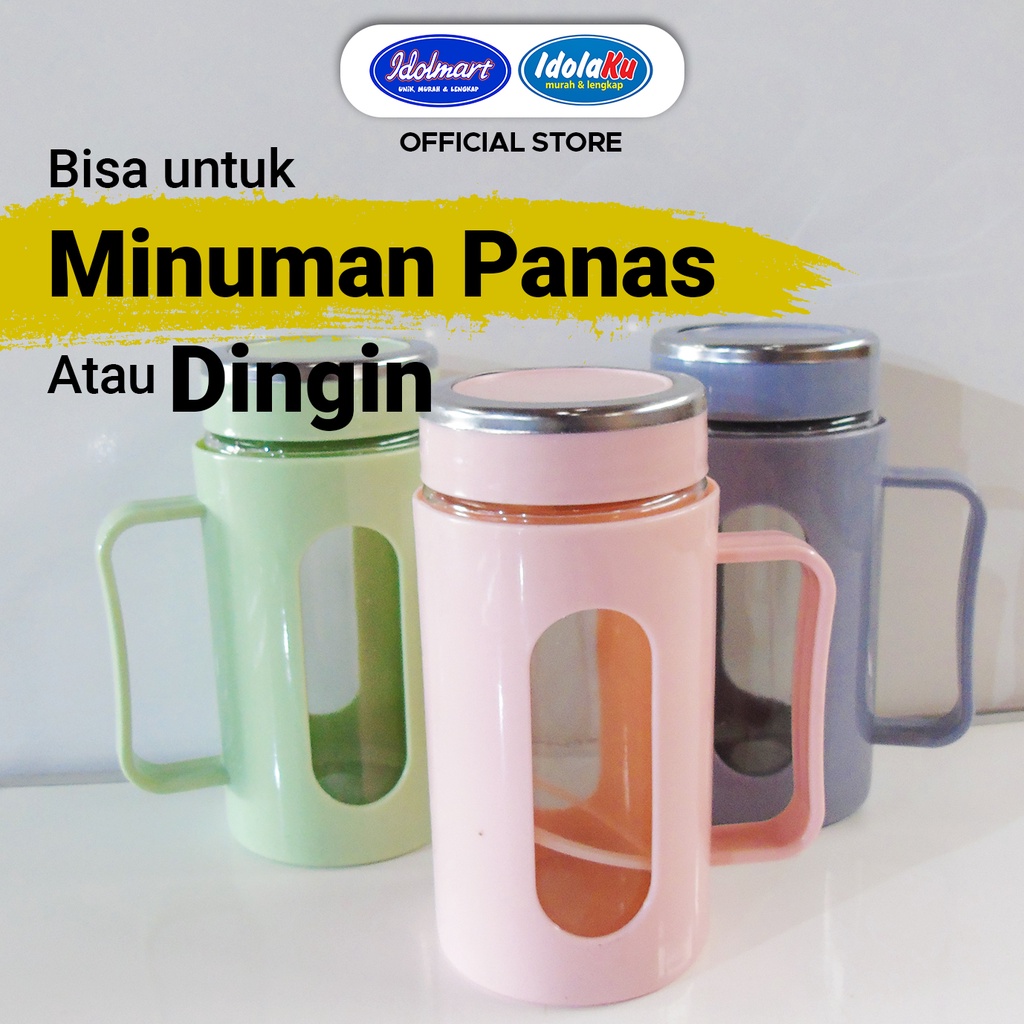 Gela Kaca Double Cover Plastic Office Cup Gelas / MUG / JAR Gelas Minum/Gelas Sehari-Hari Cocok untuk berbagai suasana dengan Ukuran yang Mungil Mudah dibawa Kemana pun Bisa Digunakan Untuk Air Panas/Dingin Bahan: Kaca Tebal Diameter: 14.5 X 6.5 Cm Kapasitas : 350ML