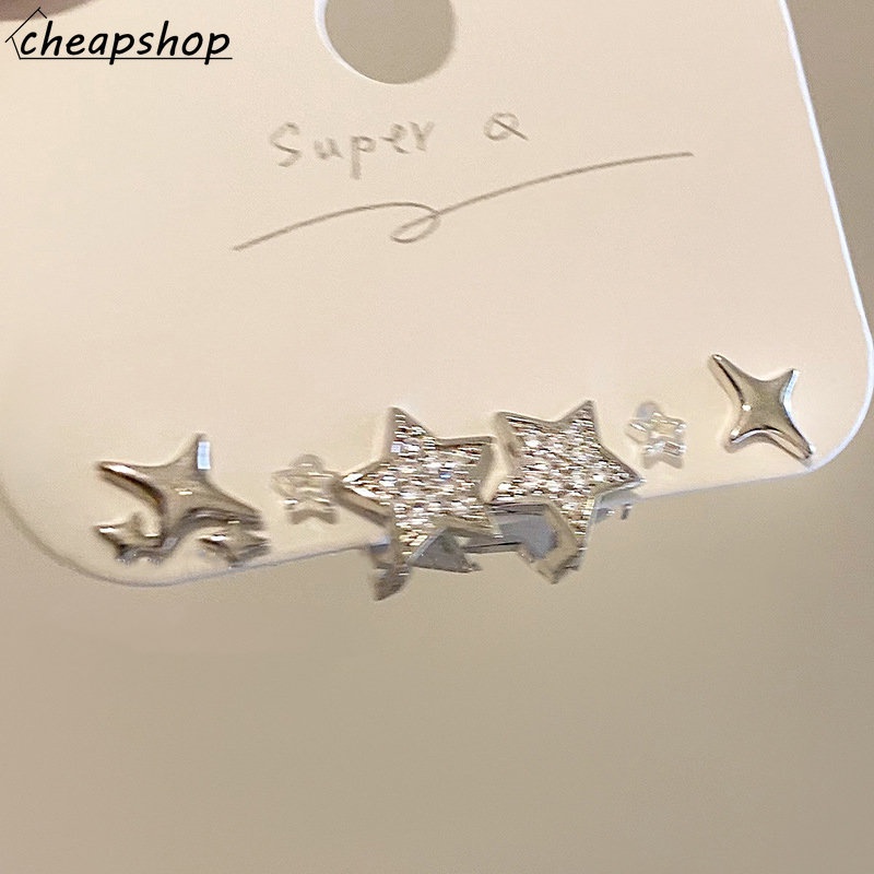 Detail Ifyou 6Pcs/Set Anting Stud Bintang Berujung Lima Set Fashion Kristal Anting Perak Untuk Wanita Perhiasan Aksesoris