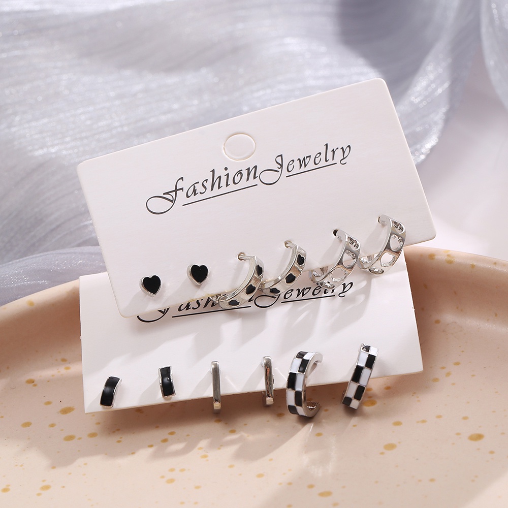 Detail Ifyou Anting Hoop Minyak Drop Sederhana Hitam Putih Checkerboard Heart Stud Earrings Untuk Perhiasan Aksesoris Wanita