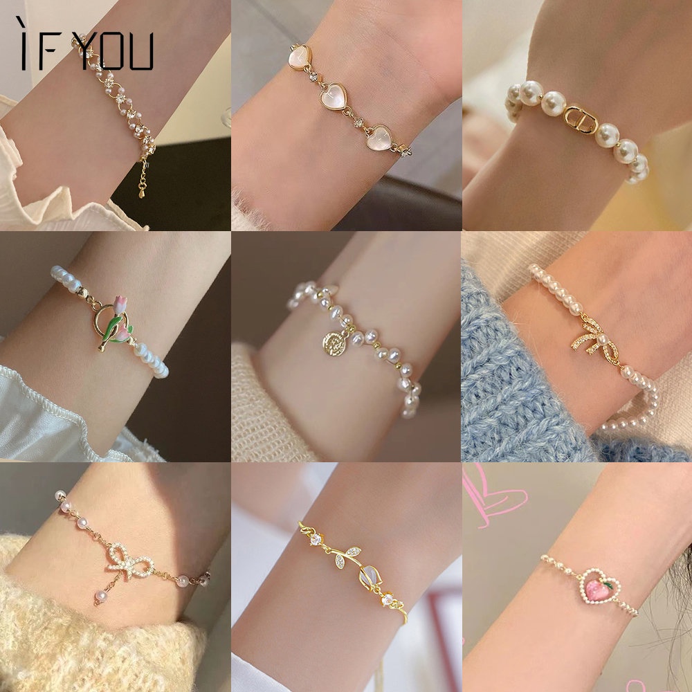 Aksesoris Fashion > Gelang Tangan & Bangle > Ifyou Elegan Y2K Tulip Emas Kristal Kupu-Kupu Pasangan Gelang Fashion Choker Bracelets Untuk Wanita Perhiasan Aksesoris