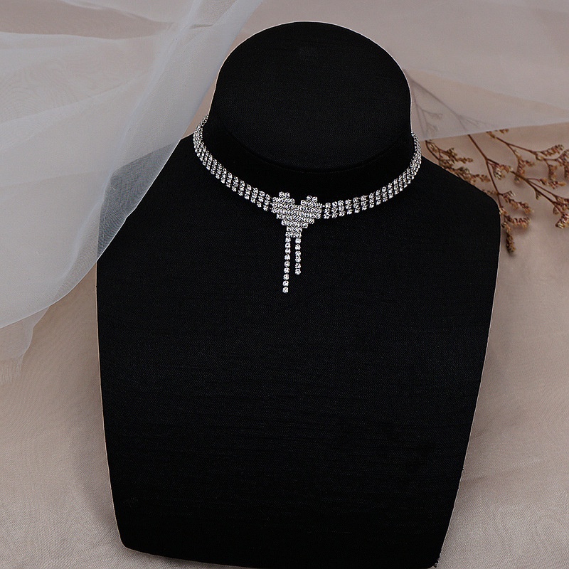 IFYOU Kalung Jumbai Hati Simple Choker Rantai Klavikula Kristal Silver Untuk Aksesoris Perhiasan Wanita