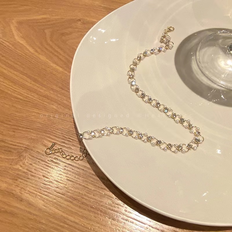Detail IFYOU Kalung Klavikula Emas Sederhana Choker Rantai Kristal Mutiara Untuk Aksesoris Perhiasan Wanita