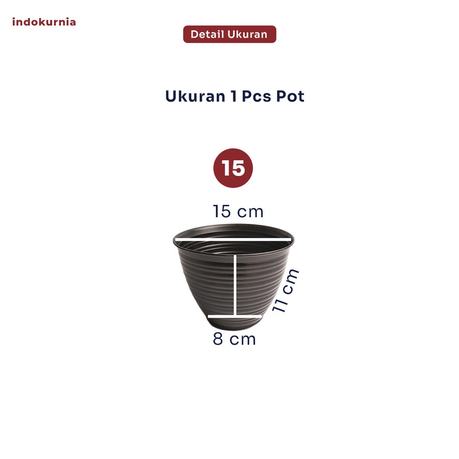 Detail Ukuran (Diameter Atas x Diameter Bawah x Tinggi): 15 = 15 cm x 8 cm x 11 cm