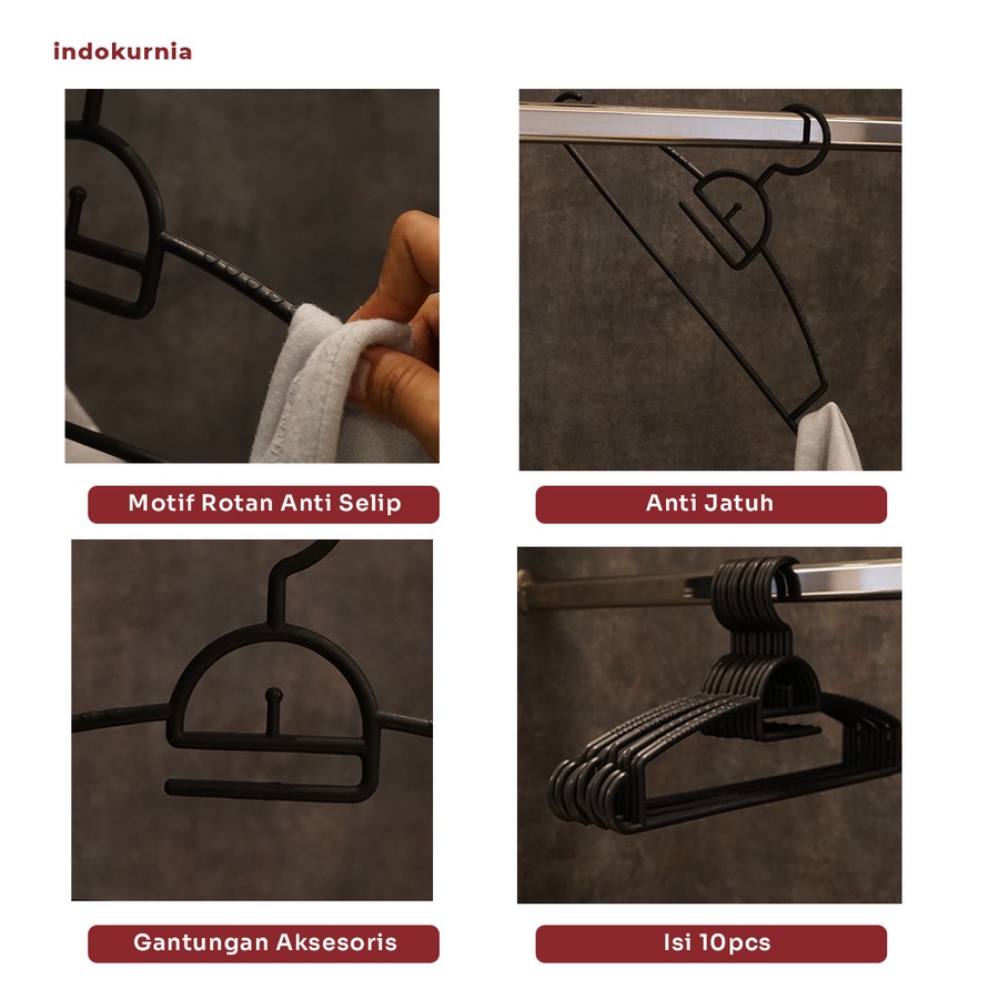 Gantungan baju rotan berbahan dasar plastik PolyPropylene (PP), hadir dengan warna yang sangat diminati kaum-kaum aesthetic. Terdapat 2 ukuran agar bisa seragaman satu rumah :)