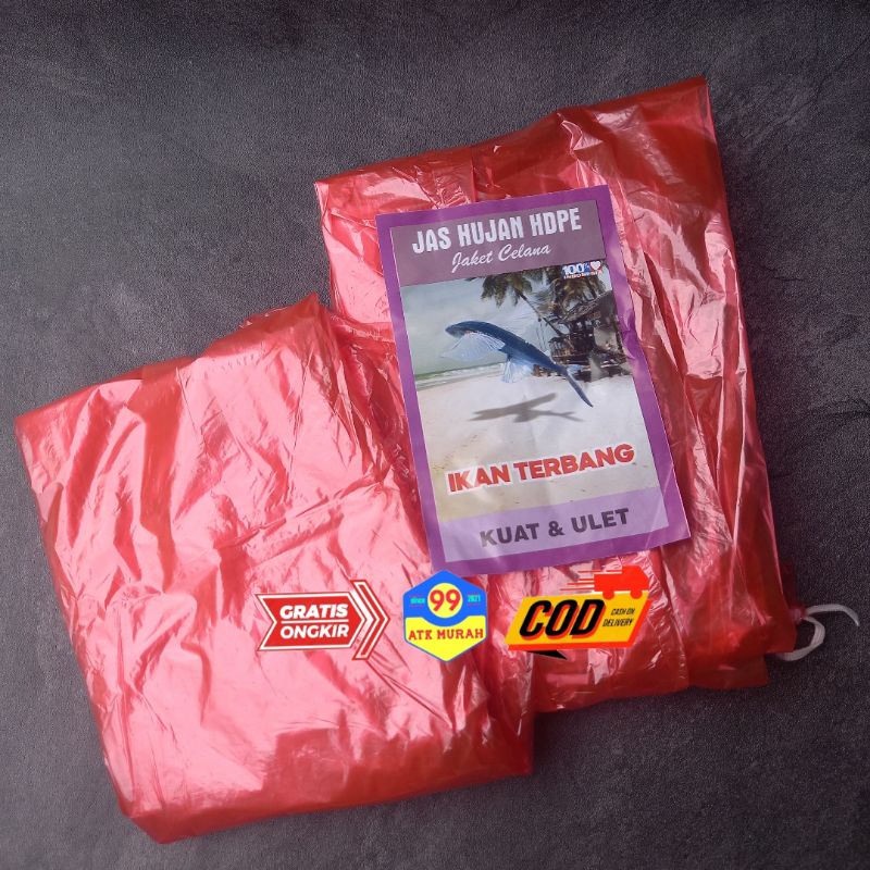 Detail IKAN TERBANG Setelan BAJU CELANA isi 12- Mantel Plastik/Jas Hujan Plastik/Jas Hujan Murah