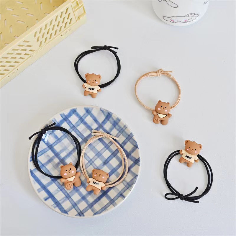 Detail Ikat Karet Rambut/Scrunchie Beruang Lucu Untuk Wanita Daily Fashion Korean Aksesoris