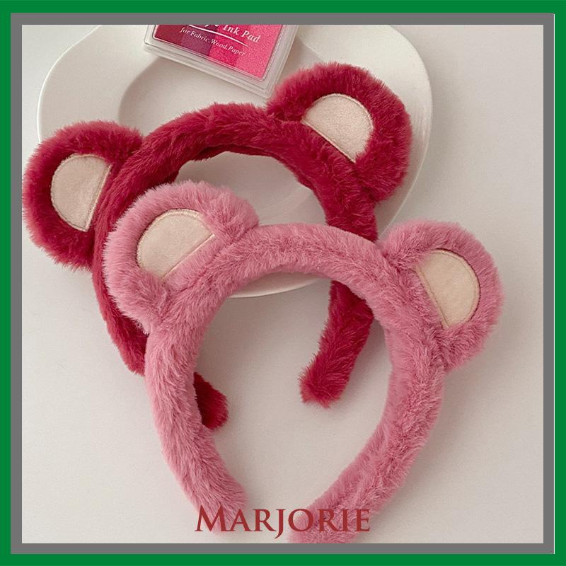 Detail Ikat Kepala Cuci Muka Wanita Beruang Stroberi Mewah Ikat Kepala Jepit Rambut Lucu Hiasan Kepala-MJD