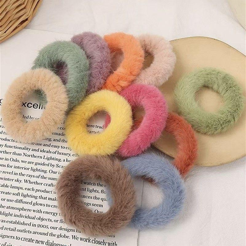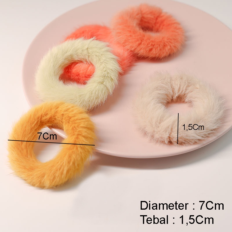 Detail IKAT PENGIKAT KUNCIRAN FASHION RAMBUT WANITA BULU DONAT POLOS ELASTIS KARET HAIRTIE KOREA LUCU CANTIK MURAH