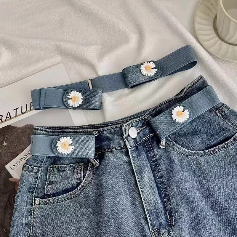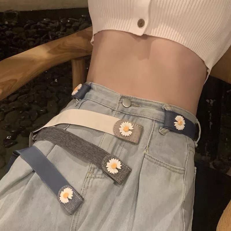 Detail Ikat Pinggang Elastis Motif Bunga Belt Gesper Korean Fashion Tali Pinggang Daisy