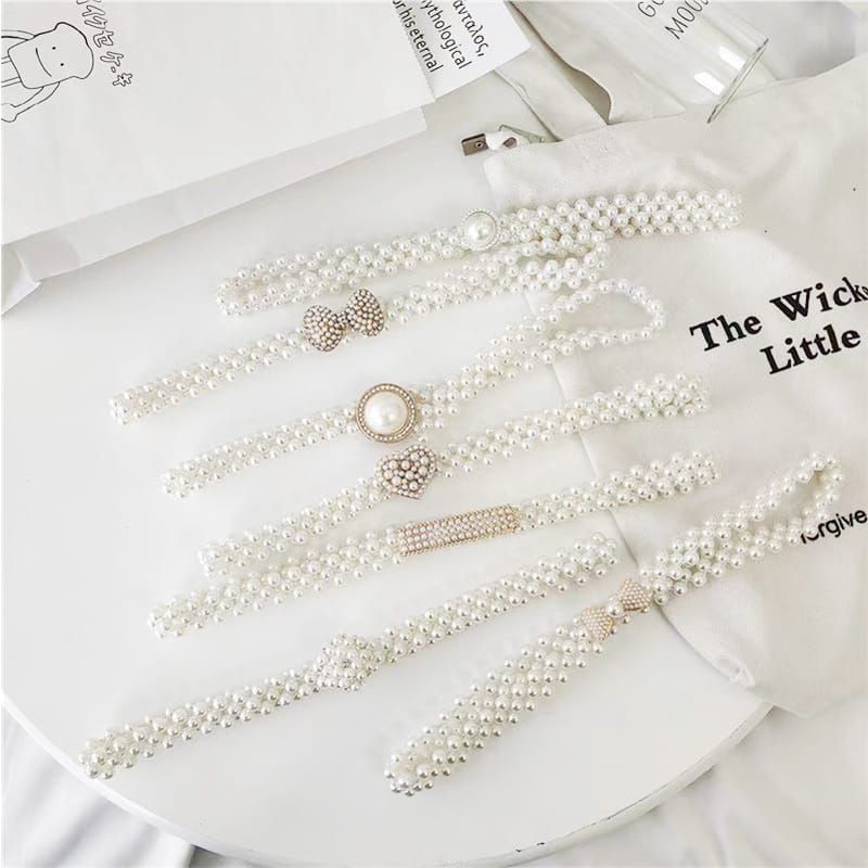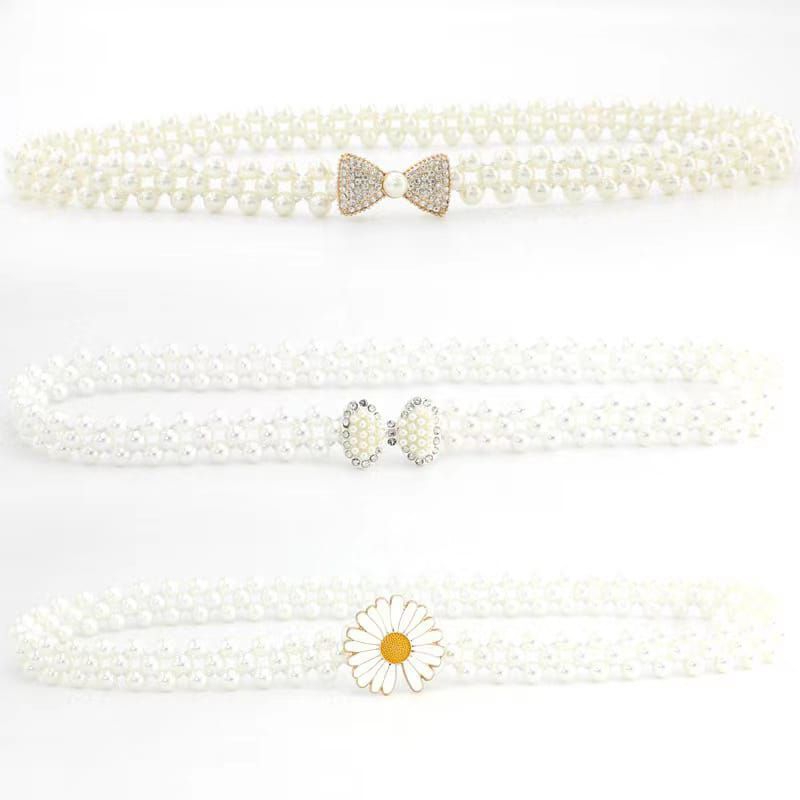 Aksesoris Fashion > Ikat Pinggang > Wanita > Ikat Pinggang Wanita Premium Impor Full Mutiara Imitasi Trendy Style Pearl Belt Gesper Tali Pinggang Elastis