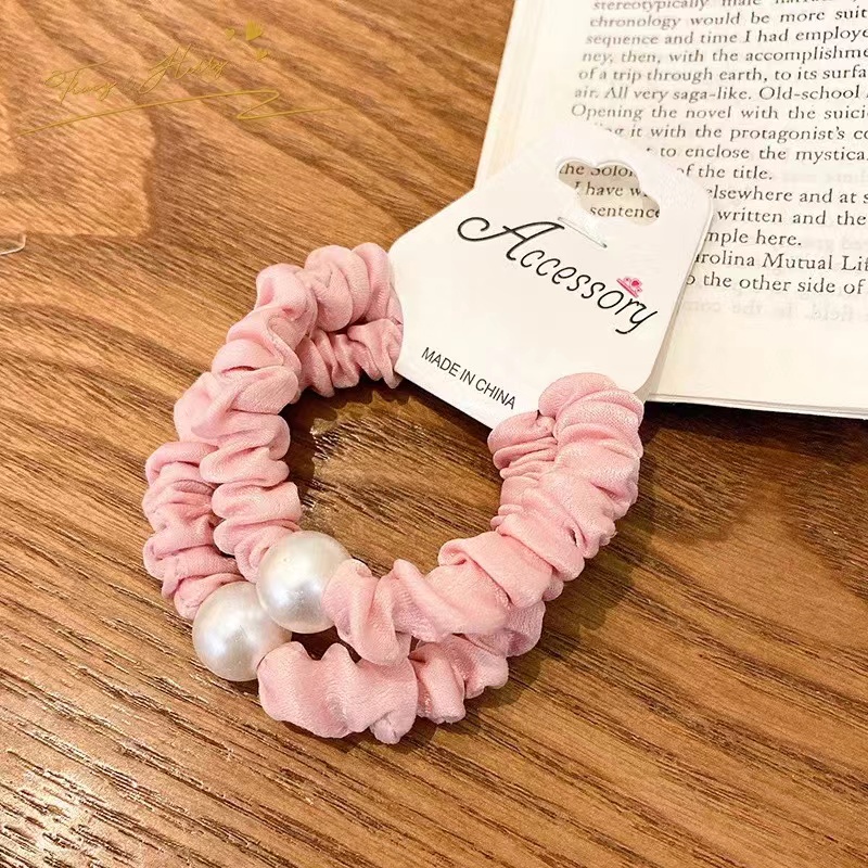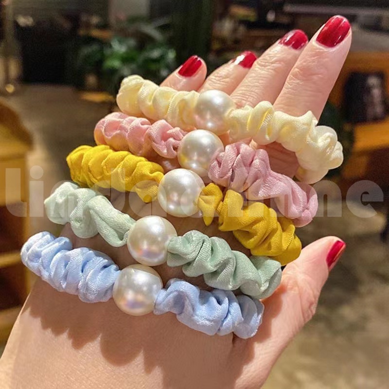 Detail Ikat Rambut Aksen Mutiara / Kuncir Rambut Bahan Karet Fashion Wanita - Srunchie Rambut Wanita