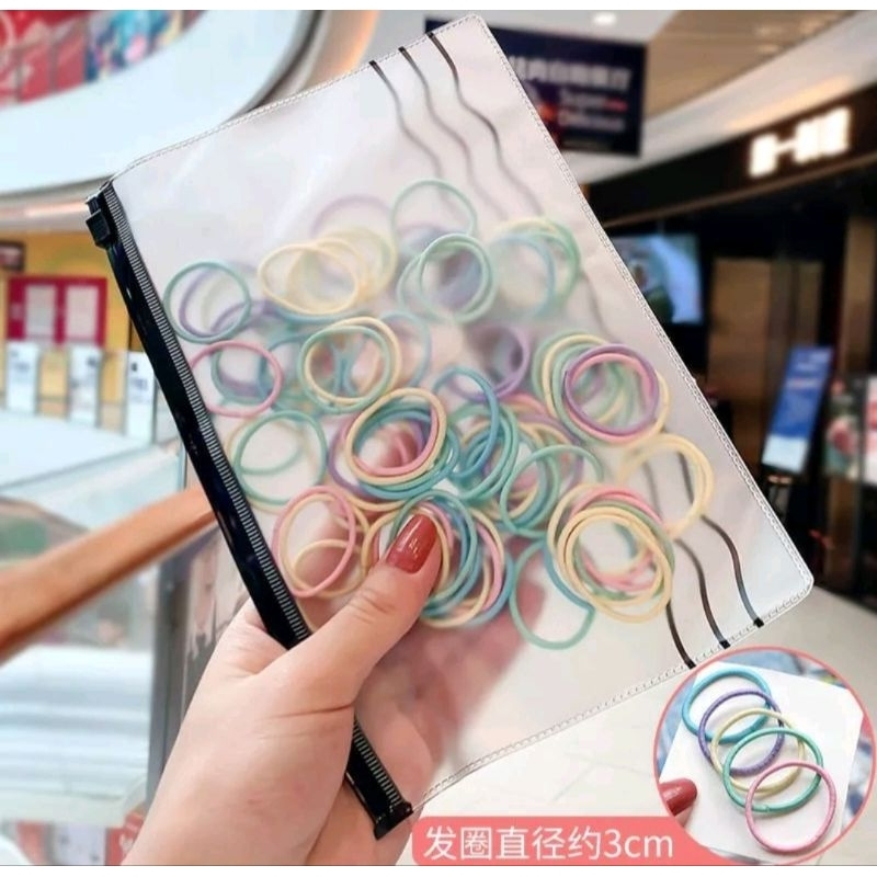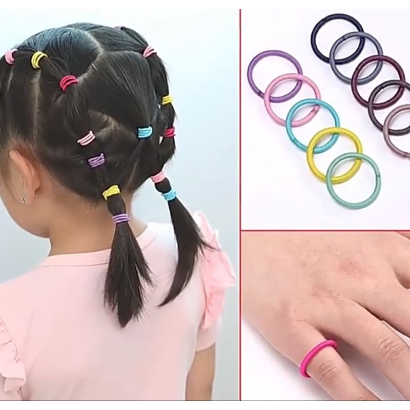 ready ikat rambut anak ikat rambut warna warni ikat rambut mini karet rambut UK sekitar 3 cm warna random motif polos harga tertera/ bungkus isi 50 pics