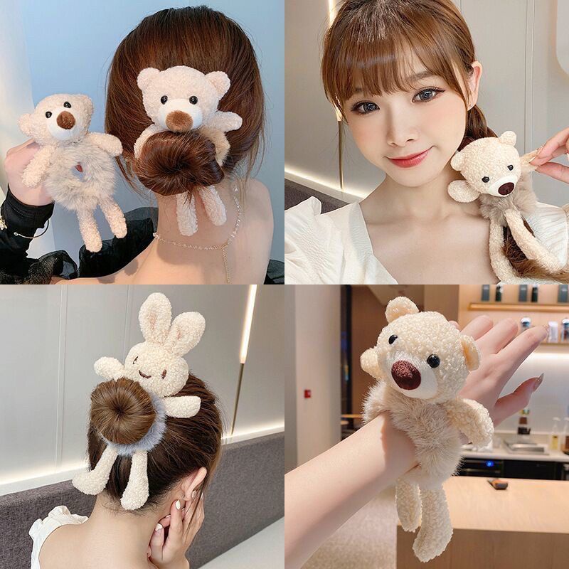 IKAT RAMBUT BEAR RABBIT SCRUNCHY / IKAT RAMBUT KOREA ANAK KECIL BONEKA BERUANG KELINCI / SCRUNCHIEKARET RAMBUT/KUNCIR BULU BONEKA BEAR KAKI TANGAN IKAT RAMBUT DONAT