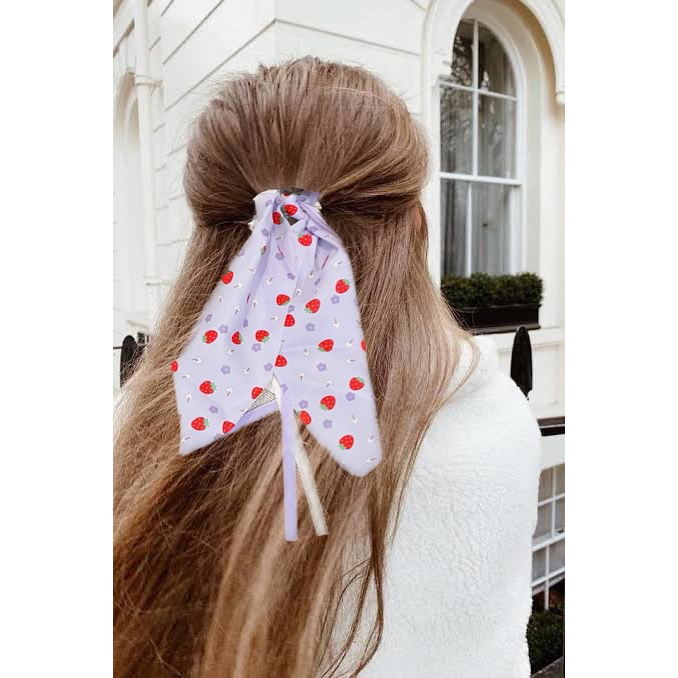 Detail ikat rambut kuncir scrunchie twilly twill strawberry panjang twil pastel