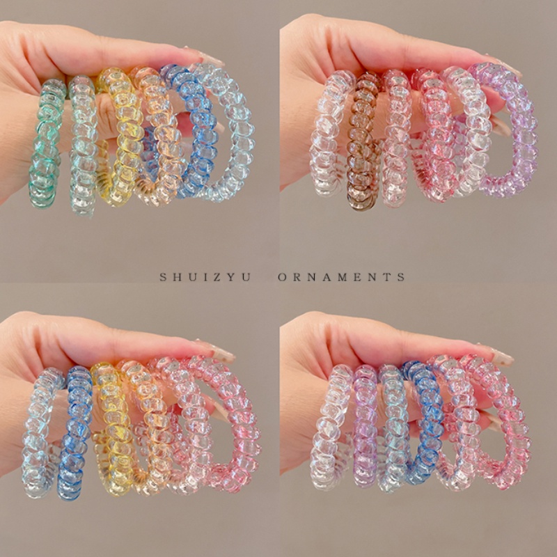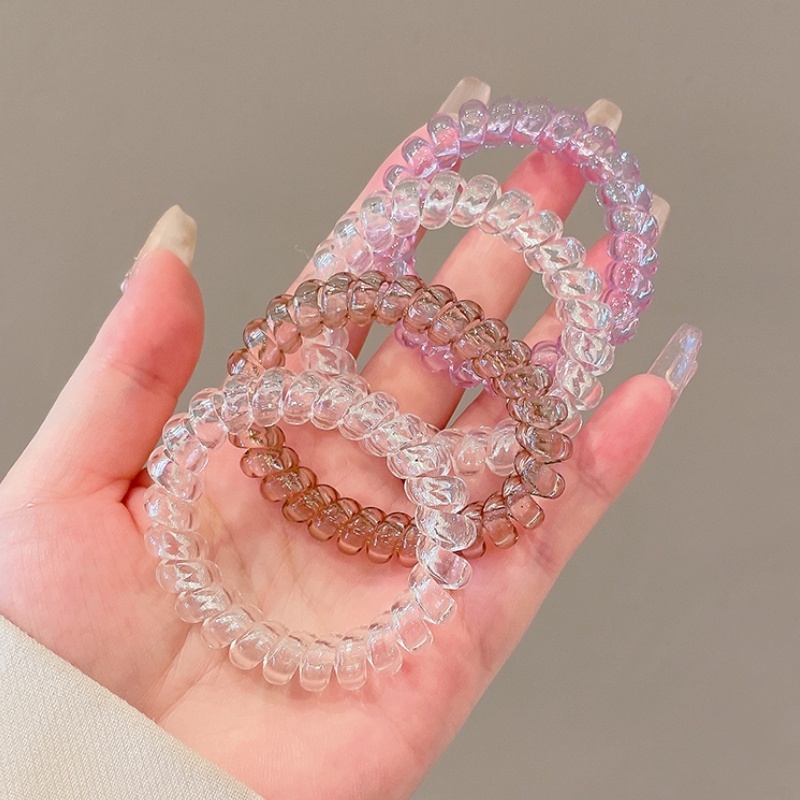 Detail Ikat Rambut Model Kabel Telepon Transparan Warna Permen Gaya Korea Untuk Wanita