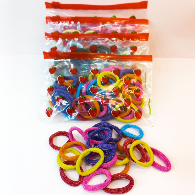 Aksesoris Fashion > Aksesoris Rambut > Ikat Rambut, Pita & Scrunchie > Ikat Rambut Ring Elastis Gliter Donat Isi 45Pcs