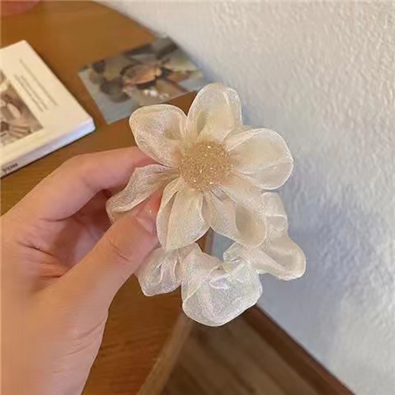 Detail Ikat Rambut Scrunchie Korea Perempuan Model Bunga Daisy Aksesoris Wanita - SG