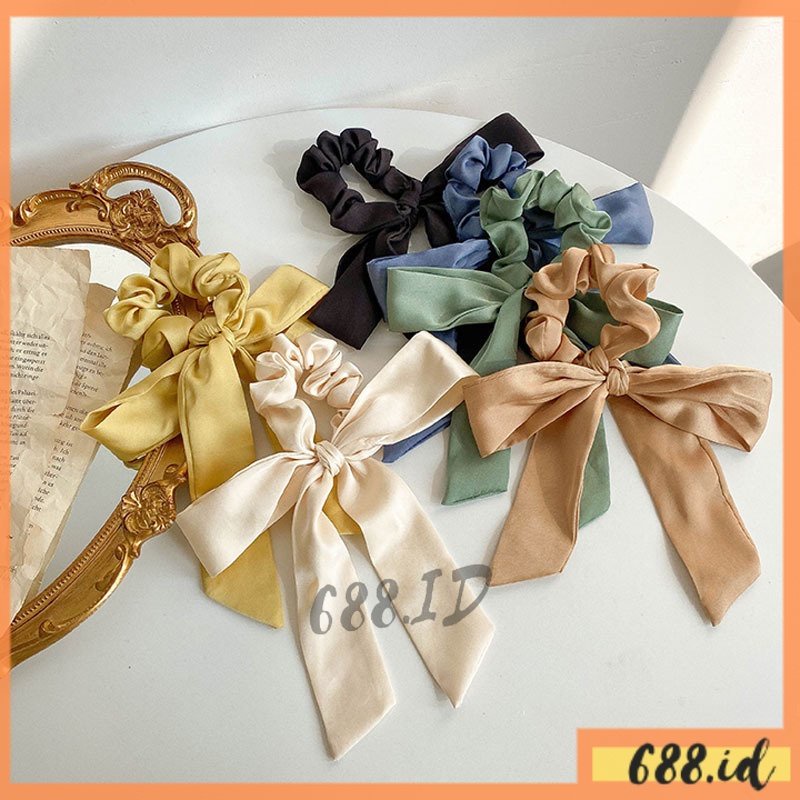 Aksesoris Fashion > Aksesoris Rambut > Ikat Rambut, Pita & Scrunchie > Ikat Rambut Scrunchie Model Scraf Warna Polos Bahan Satin Lembut Kunciran Karet Rambut untuk Anak Perempuan Wanita Dewasa Gaya Korea Elegan KCR 07