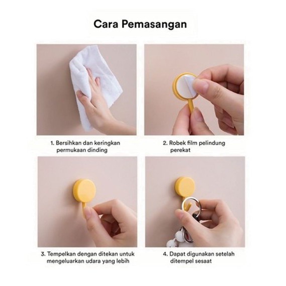 Cara Pemasangan : ✏️1. Bersihkan permukaan yang akan ditempel dengan kain kering bersih. ✏️2. Berikan perekat pada belakang cantolan tersebut. ✏️3. Tempelkan pada permukaan yang telah dibersihkan tadi. ✏️4. Jangan langsung dipakai untuk cantolan, tunggu sampai 24 jam agar perekat dapat maksimal nempelnya. Cocok digunakan pada permukaan tembok, keramik, plastik, PVC, kaca, cermin, kayu, stainless steel, dll.