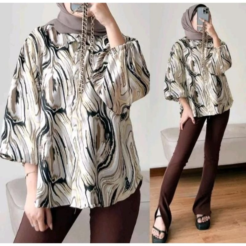 Detail IL - GHALAXIE BLOUSE MARBLE WANITA / ATASAN BLOUSE SHAKILA PREMIUM / KEMEJA MOTIF TERBARU